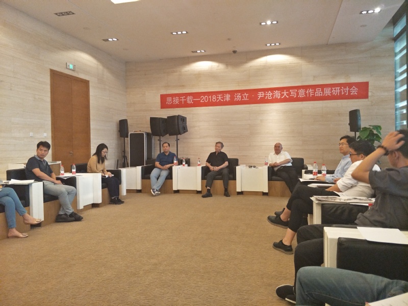 14日下午,《思接千载——2018天津 汤立·尹沧海大写意作品展》研讨会在天津美术馆会议室召开。会议由天津市美术家协会副主席,中国工笔画学会理事陈治先生主持,汤立先生、尹沧海教授,中国艺术研究院、tyc122cc太阳成集团硕、博士生以及艺术媒体界同仁参与了讨论。会议围绕中国绘画的“意象造型”、“写意性”、“写意精神”等问题展开讨论,旨在探究当下中国绘画的发展方向,并对于如何使中国绘画肩负起新时期文化事业发展的历史使命问题展开交流。通过讨论、交流,会议在充分挖掘中国优秀文化含量,系统建构中国绘画“意象”本体、“写意精神”、笔墨内涵,深刻体悟中国哲学作为中国绘画的思想支撑等方面达成共识,认为中国绘画应当立足于“意象”本体的探究,将中国文化核心理念之一的“写意精神”的弘扬作为当下中国绘画发展中的重要课题来对待。
