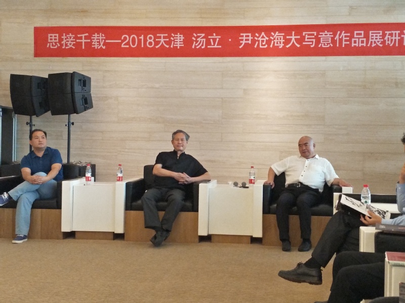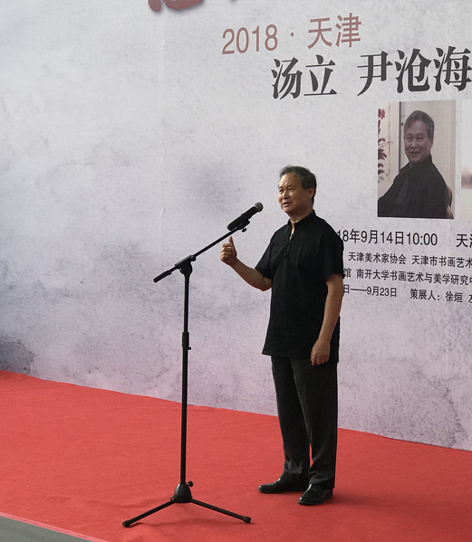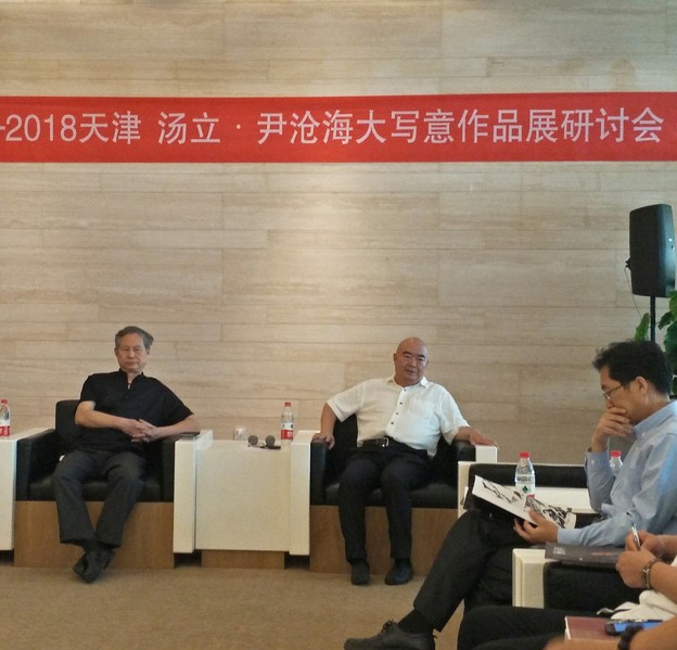天津市美协王书平主席在发言中指出,本次画展深入、学习贯彻了习近平总书记的文艺思想,弘扬了优秀传统文化,表现了时代精神的新貌。汤立先生的父亲汤文选老先生对于中国大写意画的发展做出了突出贡献,汤立先生继承家学、深入研究,形成了独特的绘画风貌。尹沧海教授的画作笔墨精炼、气格不凡,形成了富有深度的绘画风格。两位画家都在继承中国绘画优良传统的基础上不断创新,发扬了中华文化中独树一帜的“写意精神”,将当下生活的美好感受与中国古典的文化精神结合起来,创作了富有意境的绘画作品。
