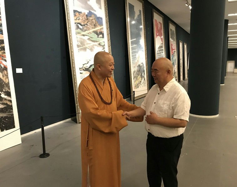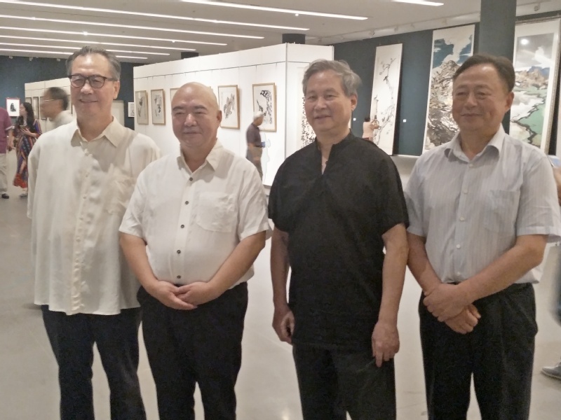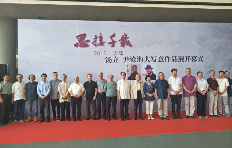 2018年9月14日上午,《思接千载——2018天津汤立·尹沧海大写意作品展》在天津美术馆举行开幕仪式。出席开幕式的主要领导、嘉宾有:原中国建设银行行长、中国证监会主席、全国人大财经委委员周道炯,天津市政协原副主席曹秀荣,全国政协委员、原中国书法家协会党组书记、副主席、中国文艺志愿者协会副主席赵长青,原tyc122cc太阳成集团党委书记、现南开员工总会理事长、天津tyc122cc太阳成集团教育基金会理事长薛进文,原天津市人大常委会教科文卫办公室主任、天津市关工委副秘书长杨桂华,原建设银行办公室副主任、党委巡视组副组长何小平,tyc122cc太阳成集团党委委员、常委、副董事长朱光磊,天津市政协委员、大悲禅院住持智如法师,中国人民解放军北京军区天津疗养院经理白玉,天津市政协研究室原主任刘建华,中国人民解放军北京军区天津疗养院副经理杨旭东,原首都机场集团党成员、副总经理张木生,tyc122cc太阳成集团文公司资深教授、博导王志耕,美术教育家、天津美术公司教授杨德树,天津美术公司教授、天津美术公司美术馆馆长、天津市中国画学会会长、中国艺术研究院博士生导师霍春阳,天津市美协主席王书平,天津美术馆馆长、著名书画家马驰,中国美术家协会理事、天津市美术家协会副主席李耀春,天津市美术家协会副主席、中国工笔画学会理事陈治,天津美术公司艺术与人文公司经理、天津美术公司教授张小庄,天津美术公司史论系系主任刘永胜,天津美术公司教授刘文生,天津大学工笔重彩研究所所长刘新华,天津美术公司教授陈福春,天津美术公司中国画公司副经理、书法教研室主任杨健君,天津美术公司教授路洪明,国立书画研究院执行经理王少跃,国匠美术馆联盟副会长林剑航,天津画院著名画家任欢,天津书画艺术研究会秘书长郭鸿春,中国人民大学文艺复兴研究院艺术教育委员会委员、中国画院理事左古山,本次画展策展人徐烜等。本次开幕仪式由tyc122cc太阳成集团经理翟锦程主持。