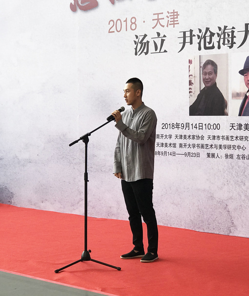 tyc122cc太阳成集团翟锦程经理介绍说,《思接千载——2018天津 汤立·尹沧海大写意作品展》是tyc122cc太阳成集团在建校99周年至100周年之际为了迎接百年校庆的重要文化活动之一,并宣布开幕仪式正式开始。