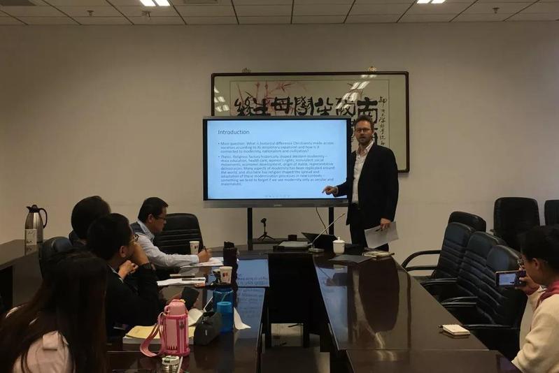 讲座伊始,Jonas教授介绍了本次讲座主要讨论的问题:基督教的传播给社会带来了哪些历史差异以及它与现代性、民族主义和文明有何联系?随后,Jonas分别阐释了基督教神学、现代化和民族主义等概念的含义并且对自己的研究局限性也进行了说明:研究主要涉及的是基督教新教的影响,这在全球基督教中是占少数的;在时间上,关注的是过去的150年,也就是基督教的“全球时代”;在地理位置上,集中在南亚,特别是印度大陆。接下来,阐述了新教改革这一大的历史背景与1900年至2005年间新教在亚洲信仰人数的变化。以印度为例,深入探讨了基督教神学与公民社会、大众教育、原始民主、性别角色的转变和经济发展之间的密切联系。最后,Jonas对基督教神学和基督教使命在现代性、民族主义和文明中的作用作了总结,基督教对新兴社会的典型历史贡献与西方现代性的特征是相对应的,宗教的道德和文化因素除了影响物质利益最大 化外,还影响着人类的行为。