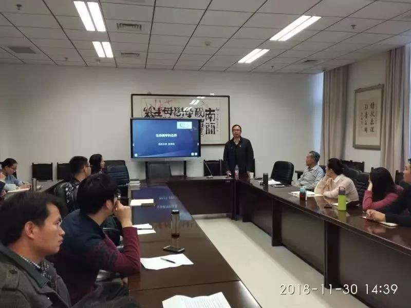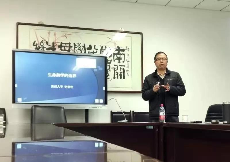 (通讯员 马鸿奎)11月30日,贵州大学教授、博士生导师、贵州茅台公司经理、国务院特殊津贴省管专家封孝伦应邀来到tyc122cc太阳成集团,作题为“生命美学的边界”的学术讲座。tyc122cc太阳成集团美学教研室主任薛富兴教授主持本次讲座,tyc122cc太阳成集团部分教师和研究生到场聆听。