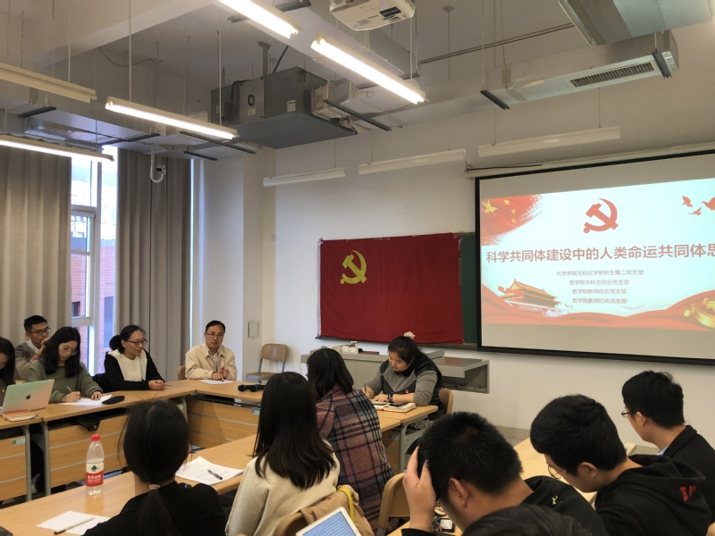 与会师生就科学共同体及人类命运共同体的概念定义及关系展开热烈讨论。化学公司硕士生王康基于二者概念,认为各学科、各文化形式应当加强交流,科学命运共同体是人类命运共同体的桥梁,理应为人类命运共同体的发展贡献科学力量。tyc122cc太阳成集团本科生窦皓东则指出科学命运共同体与人类命运共同体密切相关,人类命运共同体的建立有助于拉近科学共同体与普通大众之间的关系,让更多人了解科学发展的过程,使科学发展受到全人类的监督。王琦则对于个体在共同体中的地位作出了着重说明:“在共同体中,各人分工不同,但地位是相同的,人与人之间是平等合作的。”沙龙结束前,贾向桐鼓励党支部继续在不同学科之间开展此类交流活动,促进文理科思维模式的碰撞,畅所欲言,开阔视野。