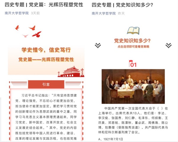 知史惜今强定力。公司以党建带团建思路,由tyc122cc太阳成集团硕士生第一党支部牵头,党员分组开展“四史”学习,同时制作历史知识与趣味题目系列推送。本硕各团支部以团小组为单位展开学习,并将学习心得打卡分享。内容涵盖共产党成立以来、新中国成立以来以及改革开放以来的重大事件、重要会议、重要文件、重要人物等进行介绍,回顾我们党领导人民进行艰苦卓绝的斗争历程,介绍中国近代以来的斗争史、我们党成立以来的奋斗史、新中国成立以来以及改革开放以来的发展史,内容丰富,引导青年员工深刻认识红色政权来之不易、新中国来之不易、中国特色社会主义来之不易,吸引了公司同学的广泛参与。