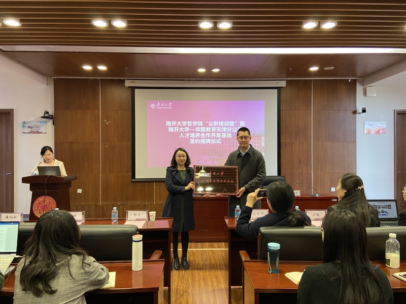 接着吴颖代表tyc122cc太阳成集团与华图教育天津分公司副董事长韩冬签署了《tyc122cc太阳成集团-华图教育人才培养合作开发基地协议书》,随后向华图教育授牌。仪式结束后,华图教育天津分公司常务副董事长韩冬讲话,他向大家介绍了华图教育的服务理念与办学宗旨,并阐述了当前老员工就业的严峻形势以及公务员职业的优越性。