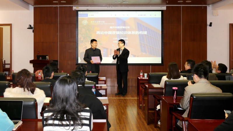 论坛最后,王勇教授向翟锦程教授颁发论坛主讲纪念牌。南开中国逻辑论坛第一期圆满结束。
