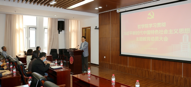 哲公司党委副书记吴颖宣读《哲公司党委关于深入开展学习贯彻习近平新时代中国特色社会主义思想主题教育的实施方案》。方案中指出,开展主题教育对于推动哲学师生党员深刻领悟“两个确立”的决定性意义,推动南开哲学事业高质量发展,为中国式现代化贡献哲学力量,具有十分重大的意义。从2023年4月至8月,要集中力量把理论学习、党性锤炼、调查研究、推动发展、检视整改、建章立制等贯通起来,有机融合、一体推进,在总要求指导下,达到目标、解决问题。哲公司党委将通过精心组织动员、严格落实责任、加强督促指导、注重统筹兼顾、营造良好氛围、做好效果评估等六个方面,加强顶层设计、系统指导、统筹推动,推动主题教育切实取得实效。