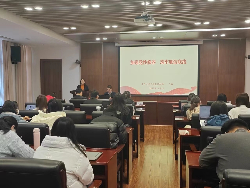 王淼以“加强党性修养,筑牢廉洁底线”为主题,以2018年全国组织工作会议为切入点,对党的纪律检查机构的发展历程、tyc122cc太阳成集团党组织发展历程及tyc122cc太阳成集团基层党组织和党员队伍有关情况进行了简要介绍。他强调,要坚持“两个确立”,做到“两个维护”,坚定理想信念,加强党性修养,敢于担当作为。党的二十大报告要求“坚持以严的基调强化正风肃纪”,强调“坚持党性党风党纪一起抓”,要充分认清加强党性修养的重要性,从多个着力点入手提高党性修养。青年学子要不忘初心、牢记使命,时刻将党章放在心中并用以指导自身实践。