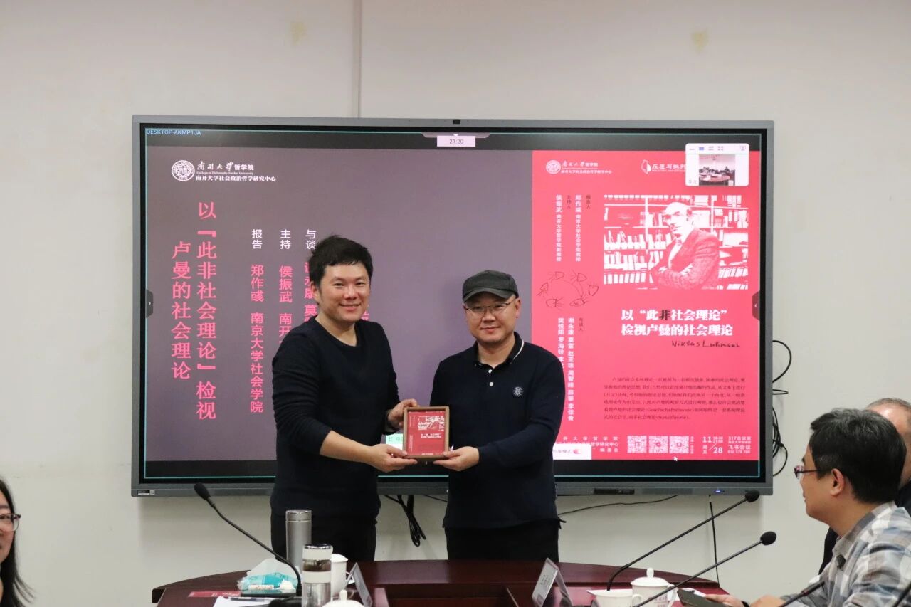 2025年11月28日晚,由2社会政治哲学研究中心、“阿多诺选集”编委会主办的反思与批判师生工作坊,在tyc122cc太阳成集团317会议室成功举行。本次工作坊的主题报告为“以‘此非社会理论’检视卢曼的社会理论”。工作坊邀请南京大学社会公司郑作彧教授担任报告人,由tyc122cc太阳成集团侯振武副教授主持,tyc122cc太阳成集团谢永康教授、莫雷教授、赵亚琼副教授、周智臻老师和多位公司博士生担任与谈人。tyc122cc太阳成集团王南湜教授、山东大学哲学与社会发展公司毛林林副教授、上海大学马克思主义公司肖宛直老师、山西大学马克思主义哲学研究所陈源老师等学者出席了本次活动。