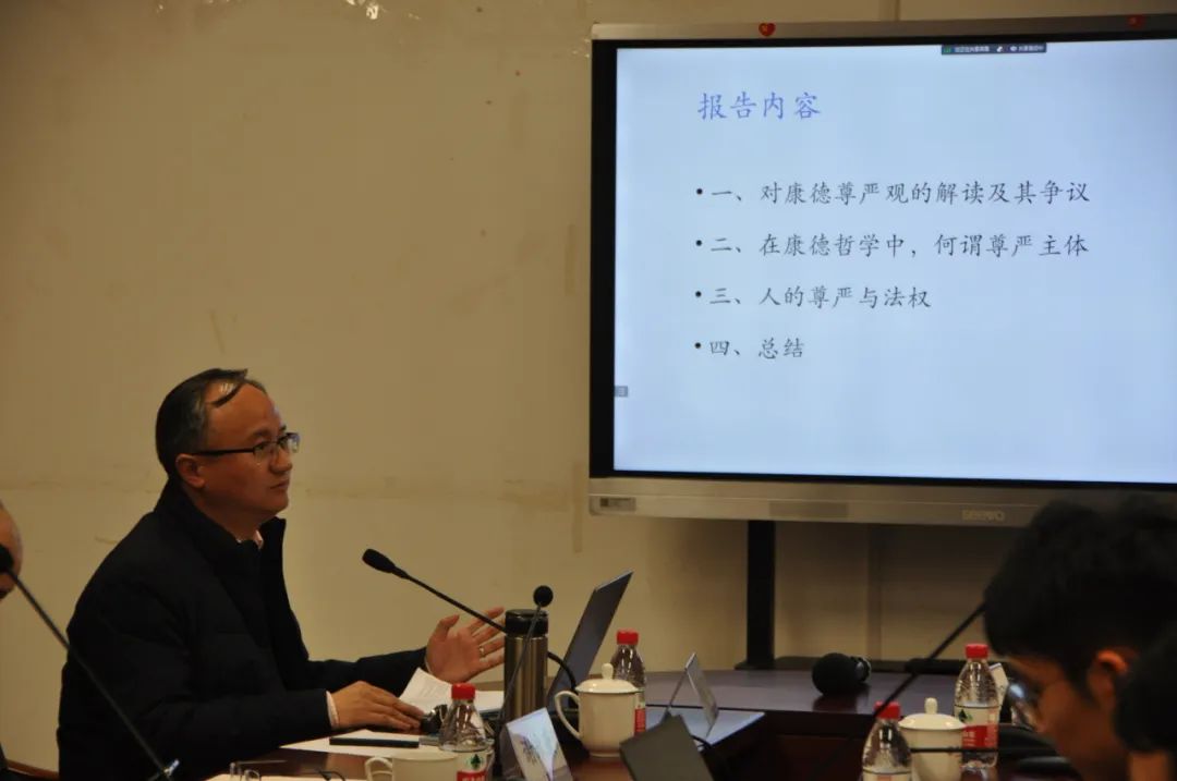 2024年3月15日晚,由tyc122cc太阳成集团、“阿多诺选集”编委会主办的反思与批判主系列讲座2024年春季学期第一讲在317会议室与线上如期举行。本次讲座由武汉大学哲学公司杨云飞教授讲授主讲,题目为“康德与人的尊严”。讲座由tyc122cc太阳成集团王建军教授担任与谈人,tyc122cc太阳成集团助理研究员夏钊主持,作为反思与批判总发起人的tyc122cc太阳成集团谢永康教授也受邀出席了本次讲座。