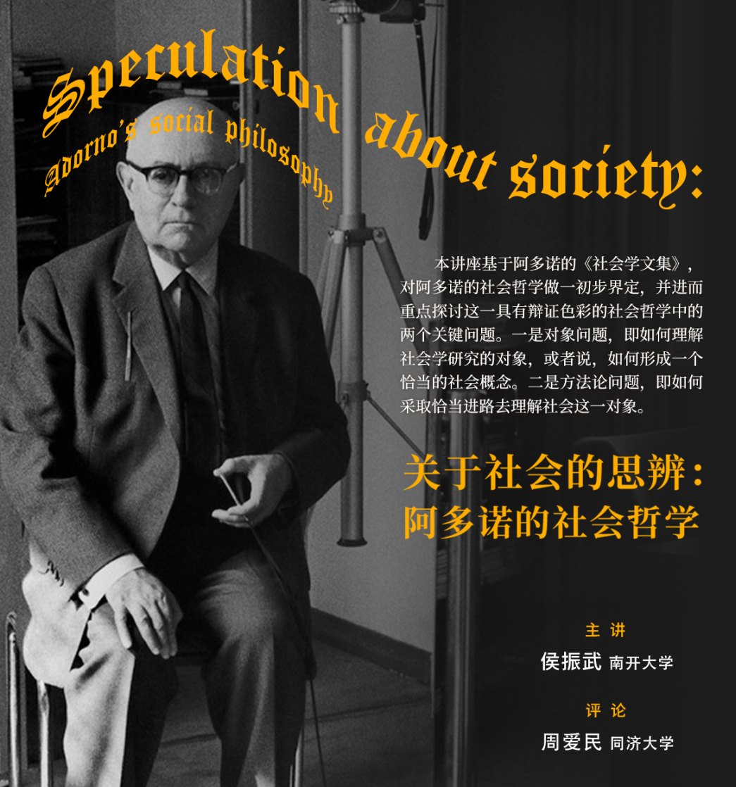 2023年秋季学期反思与批判第四讲回顾 | 侯振武 | 关于社会的思辨:阿多诺的社会哲学