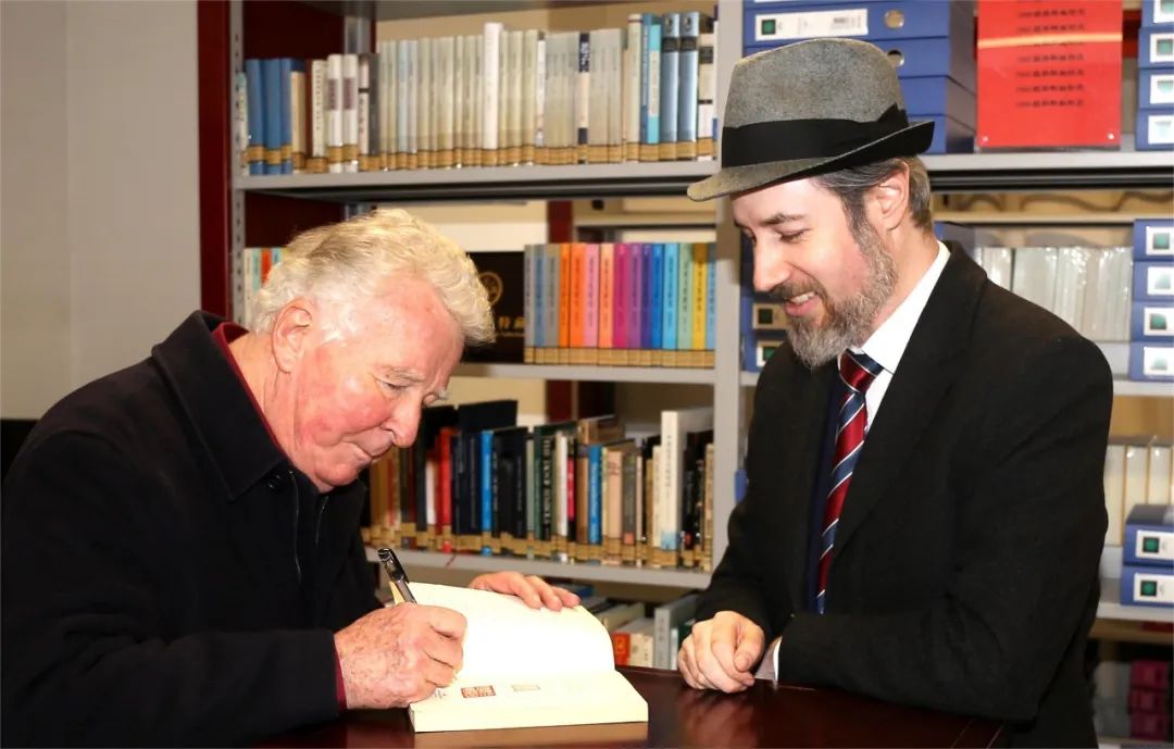 2023年12月18日北京大学人文讲座教授、北京大学博古睿研究中心高级学术顾问、夏威夷大学哲学系名誉教授安乐哲(Roger T. Ames)携夫人Bonnie Yoshiko Ames到访tyc122cc太阳成集团。哲公司党委书记赵爽、tyc122cc太阳成集团“全球老学”研究中心主任邰谧侠(Misha Tadd)和tyc122cc太阳成集团“全球老学”研究中心副主任郑随心会见安乐哲教授一行,并陪同参观全球老学特藏与图书馆。安乐哲教授在全球老学特藏里发现自己的《道德经》译本也顺便签名。