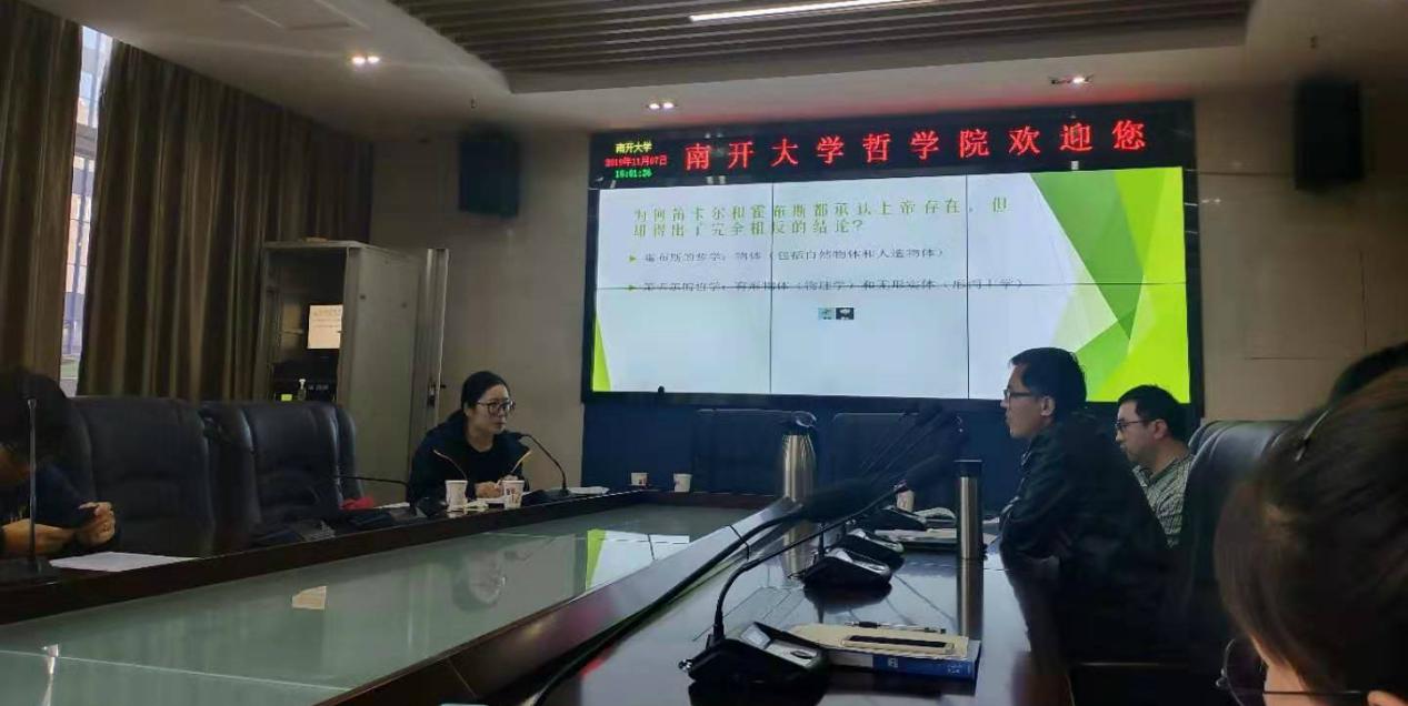 (通讯员 薛青青)2019年11月7日,tyc122cc太阳成集团外哲研究生学术沙龙系列讲座(二期)的第三讲于tyc122cc太阳成集团102举行,外国哲学专业博士生杨汲做了“有形的上帝—霍布斯的理论体系及对笛卡尔思想的挑战”的报告,外国哲学教研室教师郑辟瑞、伦理学教研室教师曹钦、魏犇群出席讲座,在读博士、硕士与会讨论。杨汲主要从三个方面论述霍布斯的观点——上帝是有形的:一是霍布斯对笛卡尔关于上帝存在证明的批判;二是霍布斯对笛卡尔关于上帝是无形实体的反驳;三是霍布斯对于“上帝是有形的”这一观点的一致论述。杨汲谈到,笛卡尔对上帝存在的证明包括因果论证和本体论论证:前者由动力因推出上帝存在;后者由具有上帝观念的我的存在来证明上帝存在。杨汲认为霍布斯是在唯物主义认识论的基础上,由否定上帝的观念进而否定笛卡尔上帝存在的证明,最后通过推理得出上帝存在。笛卡尔不仅认为上帝是存在的,而且还多次提及上帝是无形实体。在一般意义而言,实体=物体=有形体=物质。霍布斯认为即使我们对于上帝没有任何感知,上帝也是作为有形实体存在的。杨汲认为霍布斯通过诉诸于宇宙论说明这一论点,他并没有否定上帝是宇宙的一部分,并且他在文中并没有指出宇宙是一种有限的存在