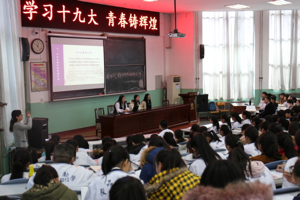 (通讯员田佳佳)为深入学习宣传党的十九大精神,推动青年员工贯彻落实党中央“学懂弄通做实”的学习要求,哲公司党委成立十九大精神宣讲团前往基层进行宣讲。11月29日,2016级硕士生党支部书记田佳佳,党员李琛、焦小妹、刘永强前往咸水沽一中,以“十九大后的青年人:理想之光与成才之路”为主题,向高二年级的三个班级进行十九大精神宣讲。宣讲团就十九大报告的行文结构、总体框架及报告精神作了简要介绍,着重指出,学习十九大报告的核心在于了解“新时代”的含义,正确把握社会主要矛盾的变化。就青年人成长成才而言,宣讲团援引习近平总书记在同各界优秀青年代表座谈时对青年人提出的“六点要求”,结合当代青年的典型事例,鼓励同学们在中学阶段做到“活心”,敢于追逐梦想,担当历史使命。据悉,tyc122cc太阳成集团十九大精神宣讲团成立于11月,吸纳研究生、本科生党员骨干作为宣传力量,积极奔赴天津市各中小学、社区,主打“面对面”的体验式交流,进行十九大精神宣讲与推广工作;宣讲团第一期活动前往tyc122cc太阳成集团附属小学,以“我眼中的十九大”为主题,引导员工关注十九大后身边发生的细微变化,激发员工的爱国情怀。